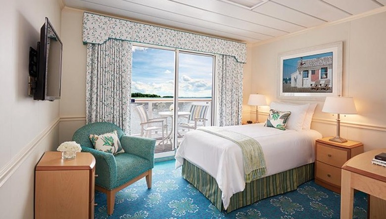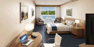 With a generous 405 sq. ft. of relaxing space, each Veranda suite includes a private walk-out balcony to enjoy the panoramic views. Considered one of the finest staterooms on any cruise ship, guests will enjoy full-size bathrooms and large living area with sliding glass door.