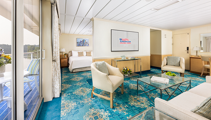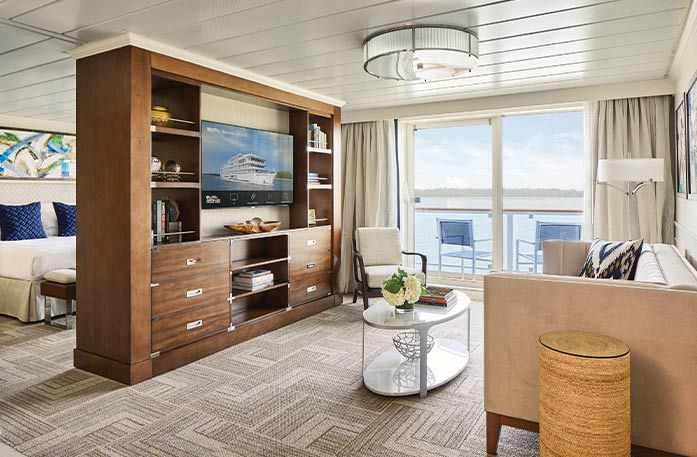 Each Owner’s Suite offers the finest accommodations with unsurpassed views of the passing scenery. A spectacular 645 sq. ft. of space is your private sanctuary to spread out and make yourself at home. This spacious suite features a full-size bathroom, as well as a separate bedroom and living area. Floor-to-ceiling sliding glass doors let light pour in and allow private panoramic views from every vantage point. An expansive private balcony is a perfect place to savor a calm afternoon or to enjoy breakfast as the sun rises over the riverbank.