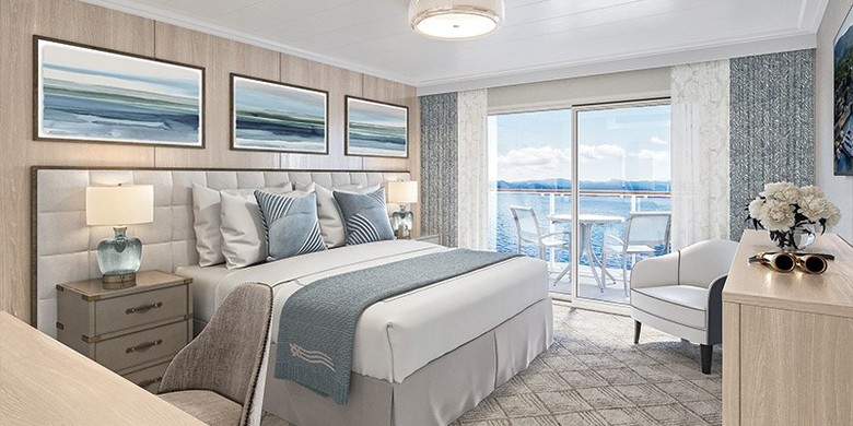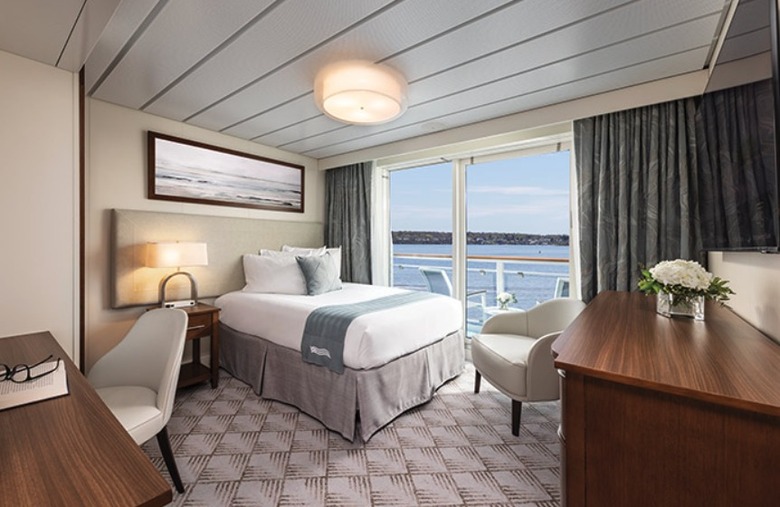 Located on the 4th deck with a generous 405 sq. ft. of relaxing space, each Veranda Suite provides the perfect balance of comfort and luxury. Considered one of the finest staterooms on any cruise ship, guests will enjoy full-size bathrooms and a large living area complete with sliding glass door. Be treated to a fruit and cheese plate when you arrive and cheers with a complimentary bottle of premium champagne as you begin your adventure. Your in-suite mini-refrigerator will be fully stocked and replenished throughout your cruise with juices, waters, white and red wine. All suites include a private walk-out balcony where you can enjoy “suite treats” delivered to you each evening and take in the breathtaking views.