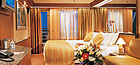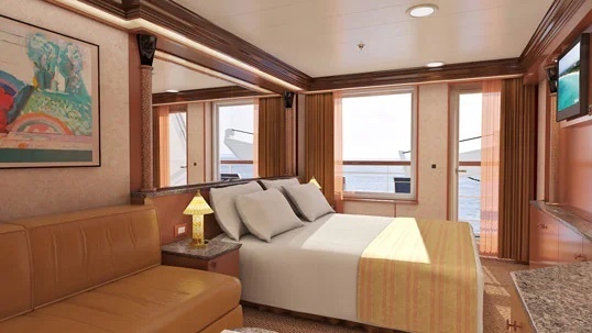 When you go for the largest, most luxurious room — and balcony — available on Carnival Ecstasy, you get a room designed to suit your desire for comfort, inside and out. Add VIP check-in, a huge balcony, and even a convenient dressing area with vanity and you can begin to see just how extraordinarily comfy the entire experience can be.Amenities exclusive to suites:Priority check-in and express boardingPriority Main Dining Room time assignmentPriority debarkation at all portsTwo large bottles of waterPillow-top mattressBathrobesPlus, every room includes:Dedicated room stewardCarnival Comfort Collection® linensPlenty of closet and drawer spaceIn-room safe for valuablesTelevisionStateroom climate control