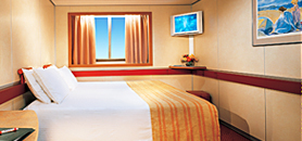 A pair of round windows in your room give you the classic seafarer’s view times two, a view of the ocean without breaking the budget.Every room includes:Dedicated room stewardCarnival Comfort Collection® linensPlenty of closet and drawer spaceIn-room safe for valuablesTelevisionStateroom climate control