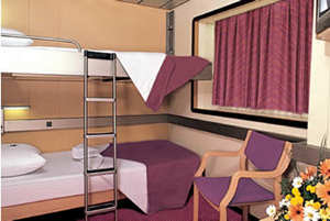 A Carnival Ecstasy Interior Upper/Lower stateroom creatively maximizes space for a pair of cruisers. These staterooms feature all the same amenities as other Interior staterooms, with a different layout — including one Twin bed, and either an upper Pullman or sofa bed. They also feature linens from the Carnival Comfort Collection, a full private bathroom and more.